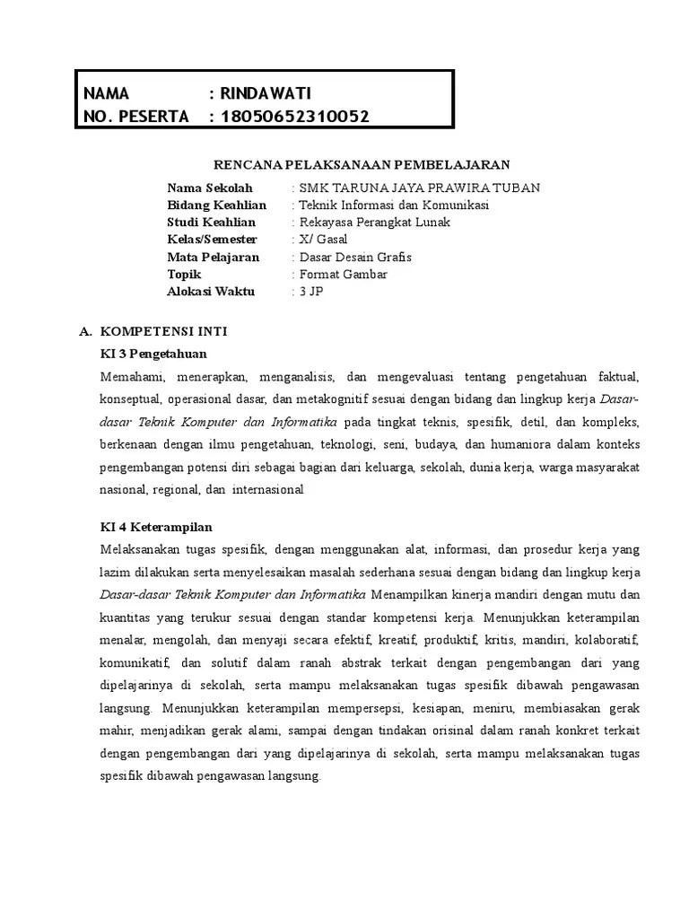 Rpp dasar desain grafis kurikulum 2013 revisi 2021 doc smkn 1 batang mata pelajaran dasar desain grafis smk ikip surabaya merupakan salah .